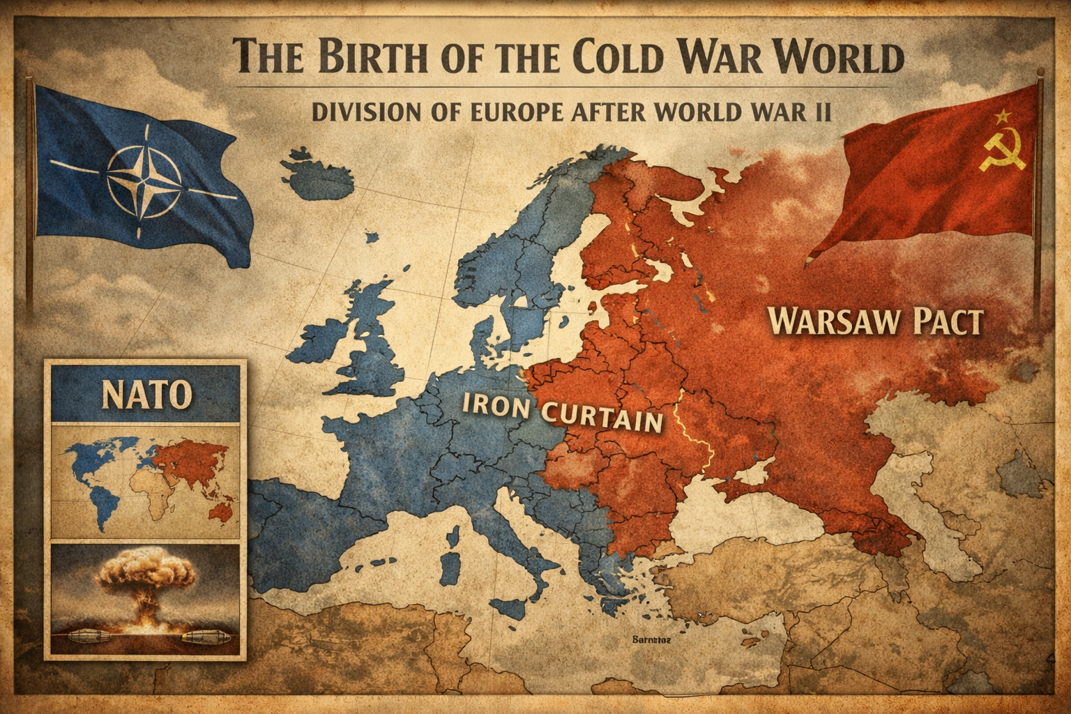 The formal militarisation of the opposing bloc followed several years later. When West Germany was permitted to rearm and officially joined NATO as a sovereign state in May 1955, the Soviet Union responded immediately. Just days later, Moscow announced the Warsaw Pact, a mutual defence alliance that brought together the Soviet Union and its Eastern European satellite states, including East Germany, Poland, Czechoslovakia, Hungary, Romania, Bulgaria, and Albania, under a unified military command. With the establishment of these two heavily armed alliances, the Cold War was firmly set in stone, cementing a divided Europe that would characterise global geopolitics for the next four decades.